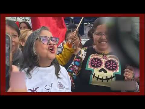 Con una de las playeras que distingue las movilizaciones contra la reforma judicial, la presidenta...