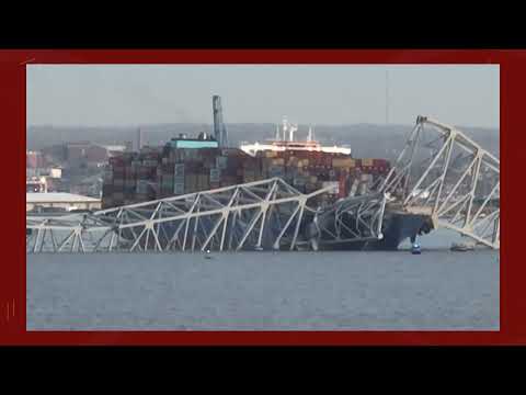 Un buque de 300 metros de longitud chocó contra el puente Francis Scott Key en...